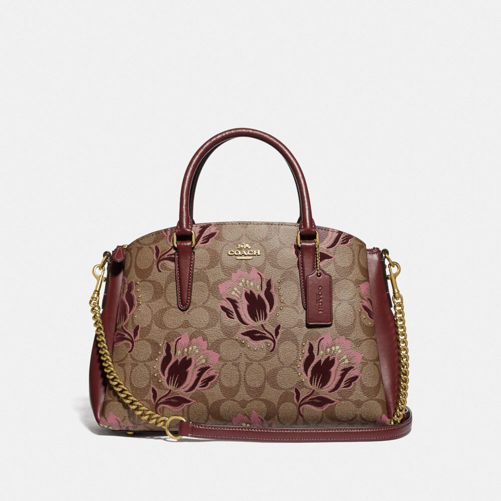 COACH FACTORY OUTLET PRICE CHART - F76726 - SAGE CARRYALL IN SIGNATURE CANVAS WITH DESERT TULIP PRINT FLOCKING - IM/KHAKI PINK MULTI