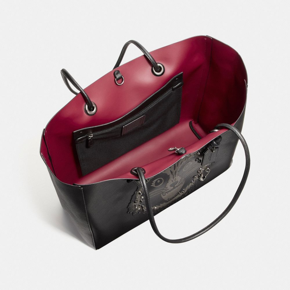 SHOPPING TOTE 39 IN POLISHED PEBBLE LEATHER WITH RACCOON (COACH F16513)