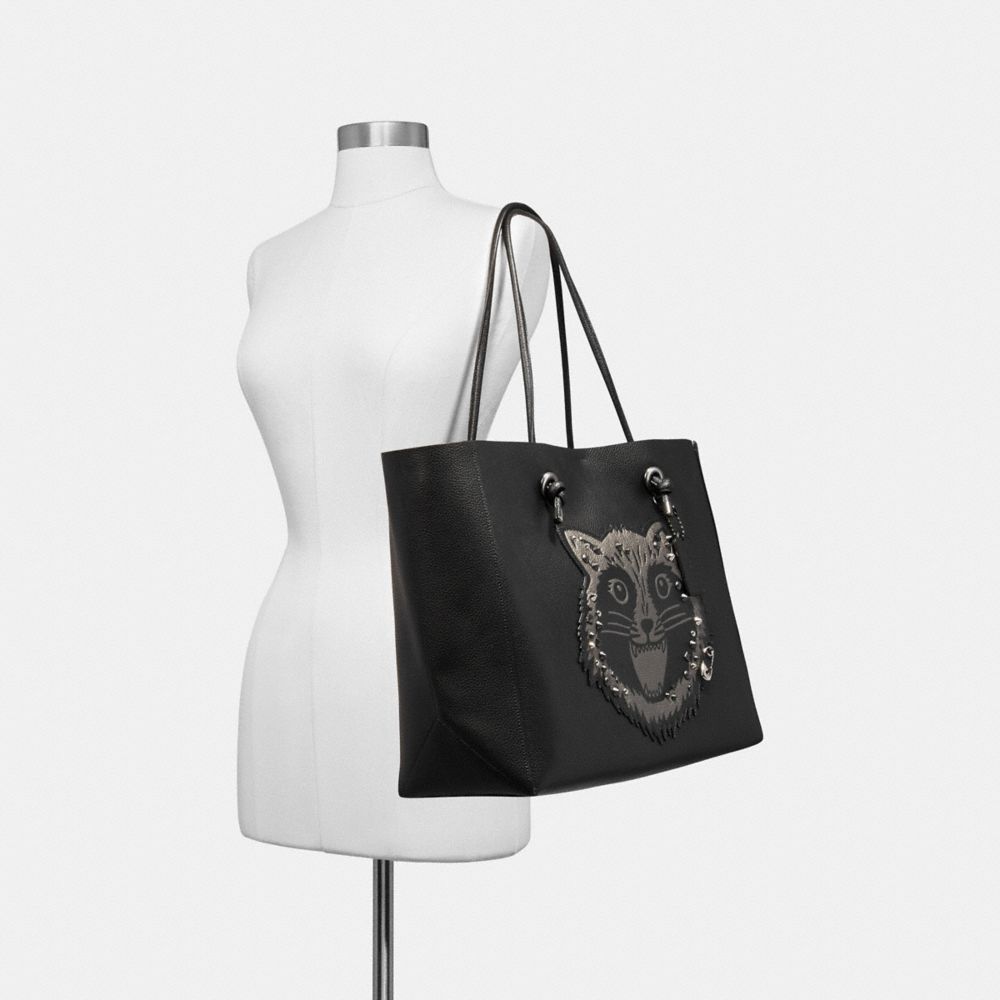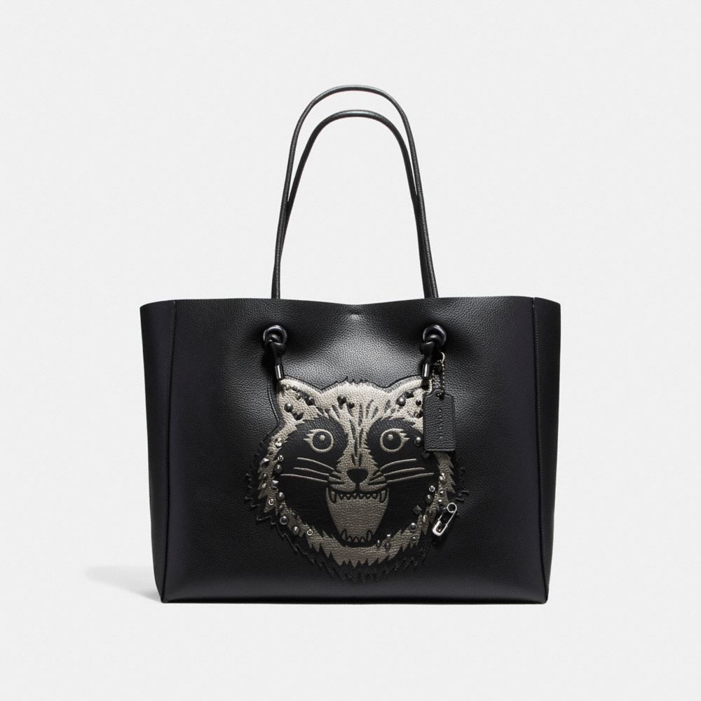 COACH FACTORY OUTLET PRICE CHART - F16513 - SHOPPING TOTE 39 IN POLISHED PEBBLE LEATHER WITH RACCOON - ANTIQUE NICKEL/BLACK