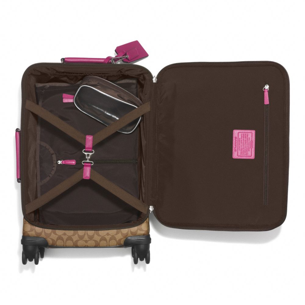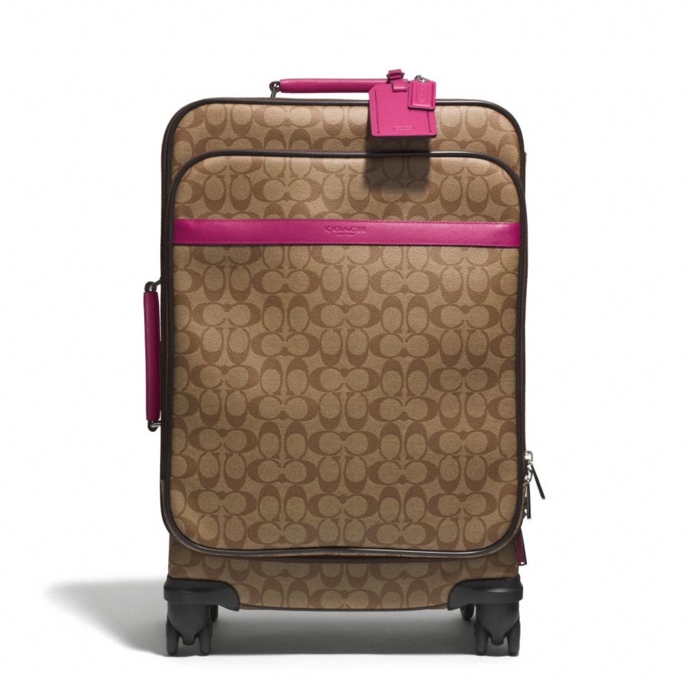COACH FACTORY OUTLET PRICE CHART - F77611 - SIGNATURE COATED CANVAS 22 INCH WHEEL ALONG WITH SAFFIANO TRIM - SILVER/KHAKI/RASPBERRY