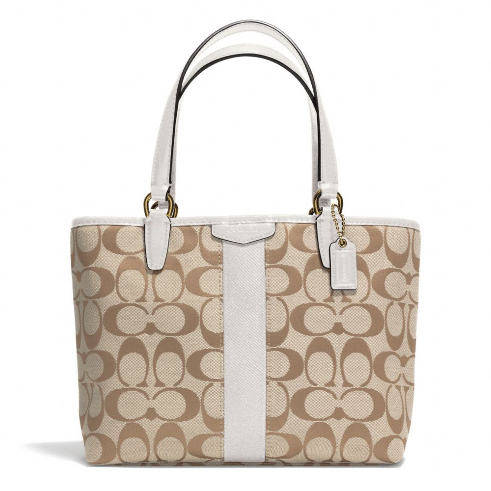SIGNATURE STRIPE TOP HANDLE TOTE (COACH F51156)