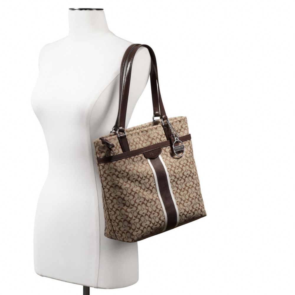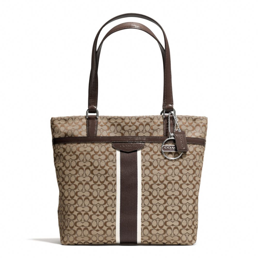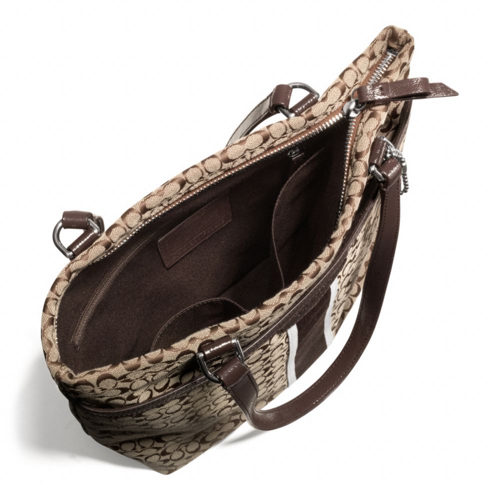 COACH FACTORY OUTLET PRICE CHART - F28625 - SIGNATURE STRIPE 6CM TOTE - SILVER/KHAKI/MAHOGANY