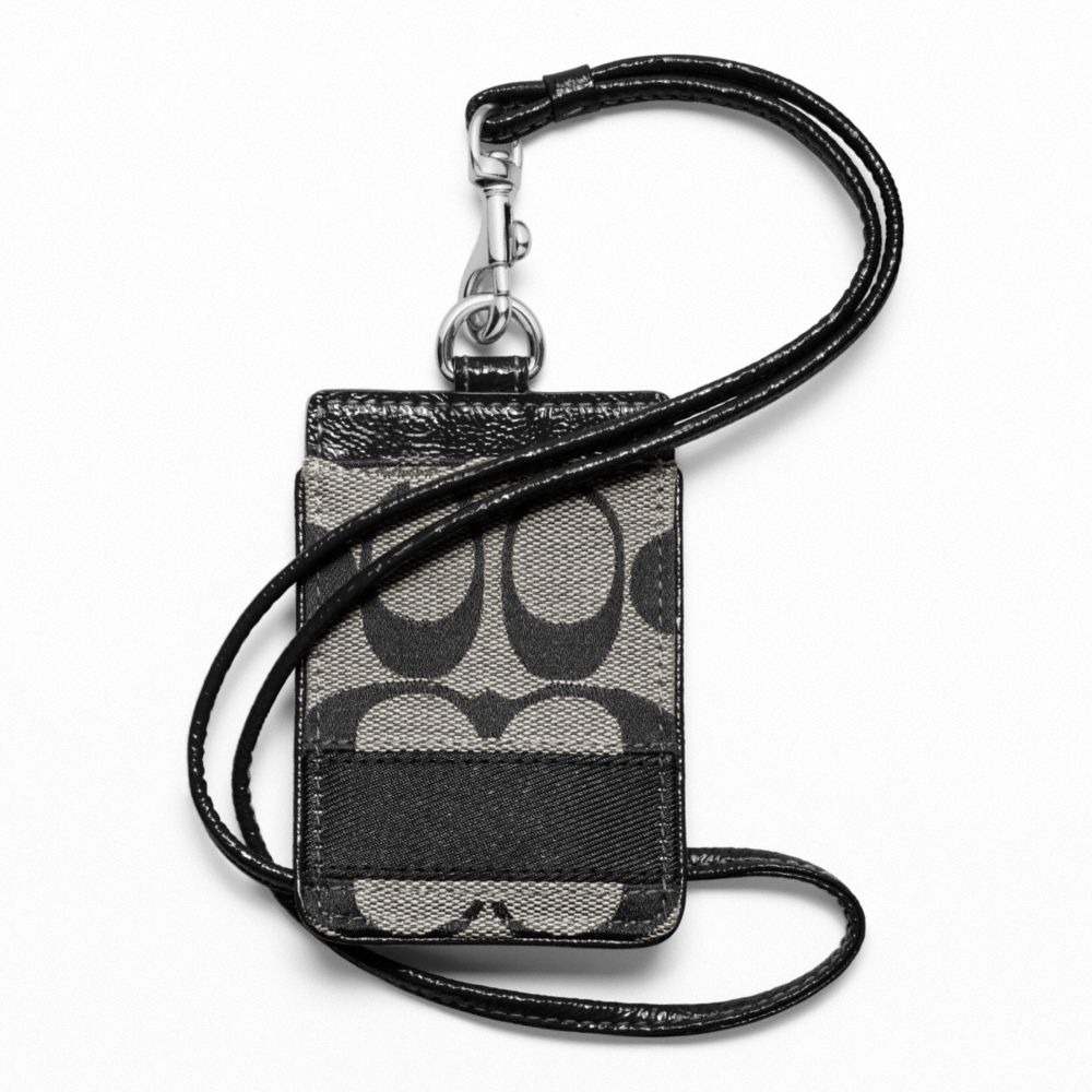 COACH FACTORY OUTLET PRICE CHART - F61766 - SIGNATURE STRIPE LANYARD ID CASE - SILVER/BLACK/WHITE/BLACK