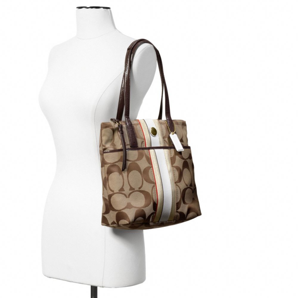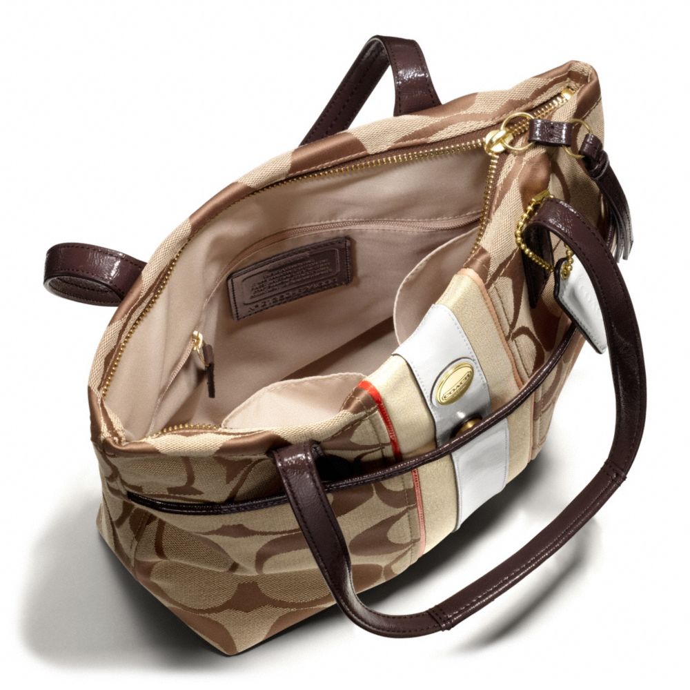 COACH FACTORY OUTLET PRICE CHART - F24666 - SIGNATURE STRIPE MULTI STRIPE TOTE - BRASS/KHAKI/VERMILLION MTI