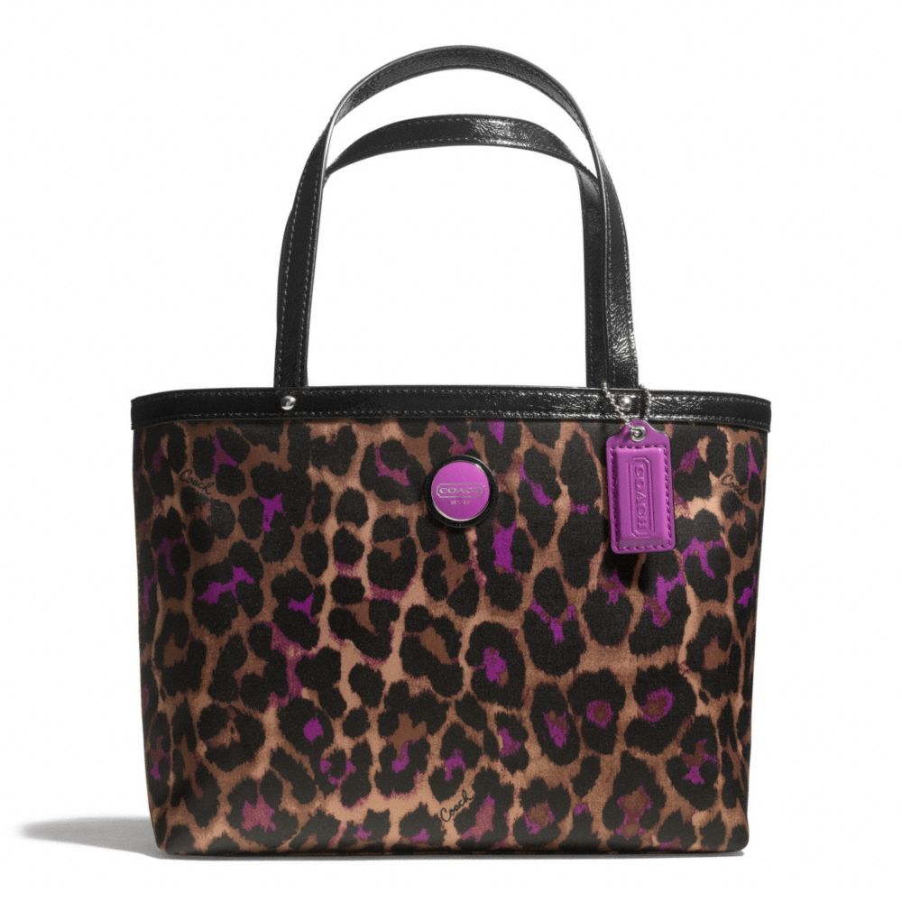 SIGNATURE STRIPE OCELOT PRINT TOP HANDLE TOTE (COACH F50102)