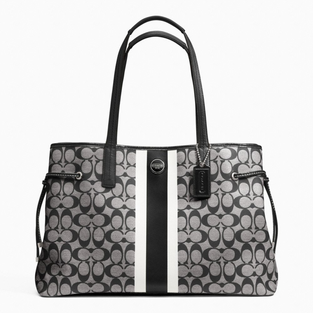 COACH FACTORY OUTLET PRICE CHART - F23049 - SIGNATURE STRIPE PVC LARGE CARRYALL - SILVER/BLACK/WHITE/BLACK