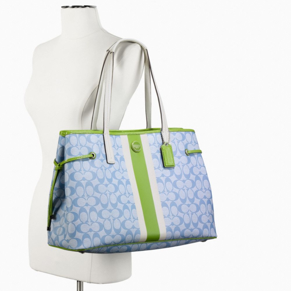 SIGNATURE STRIPE PVC LARGE CARRYALL (COACH F23049)