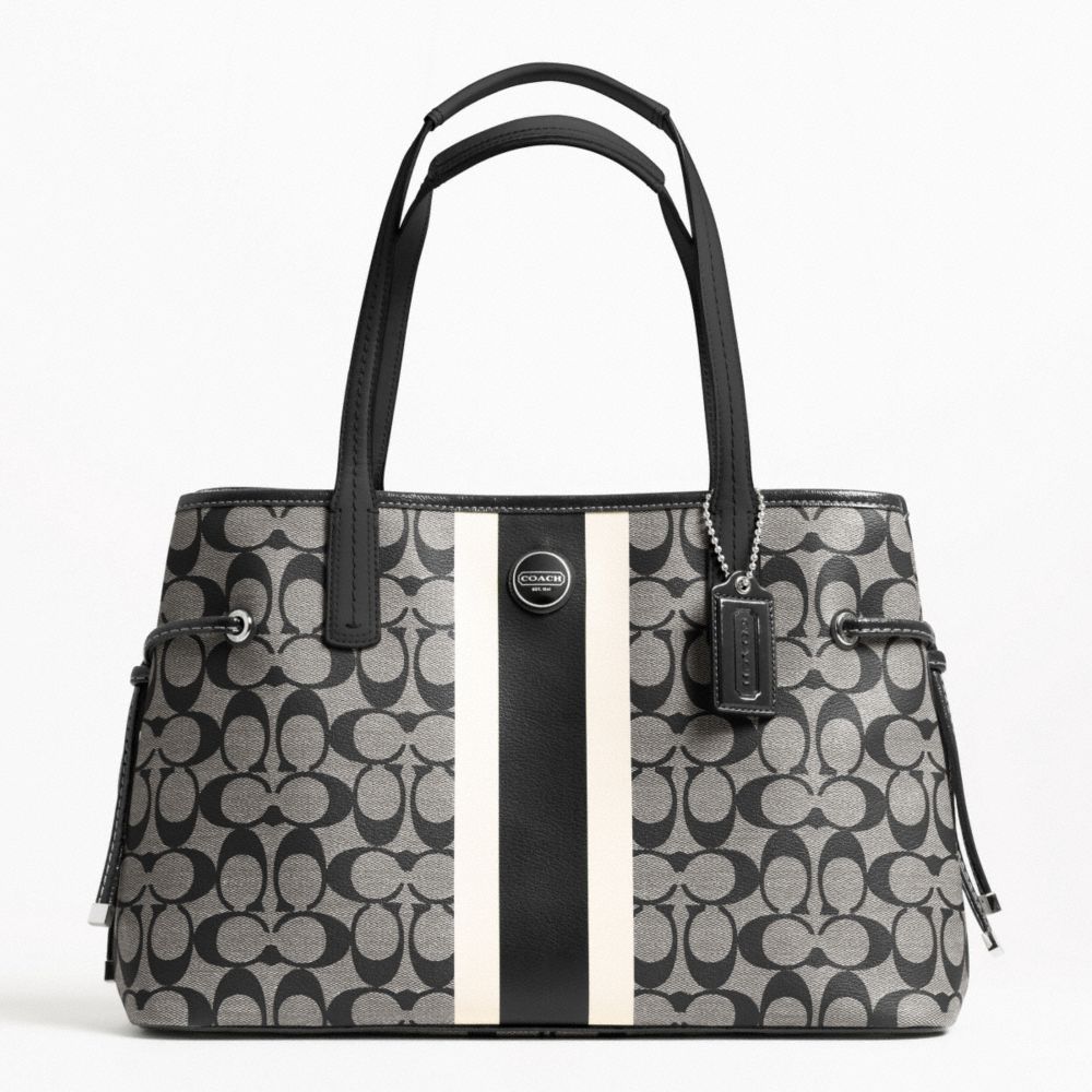 SIGNATURE STRIPE PVC STRIPE CARRYALL (COACH F22908)