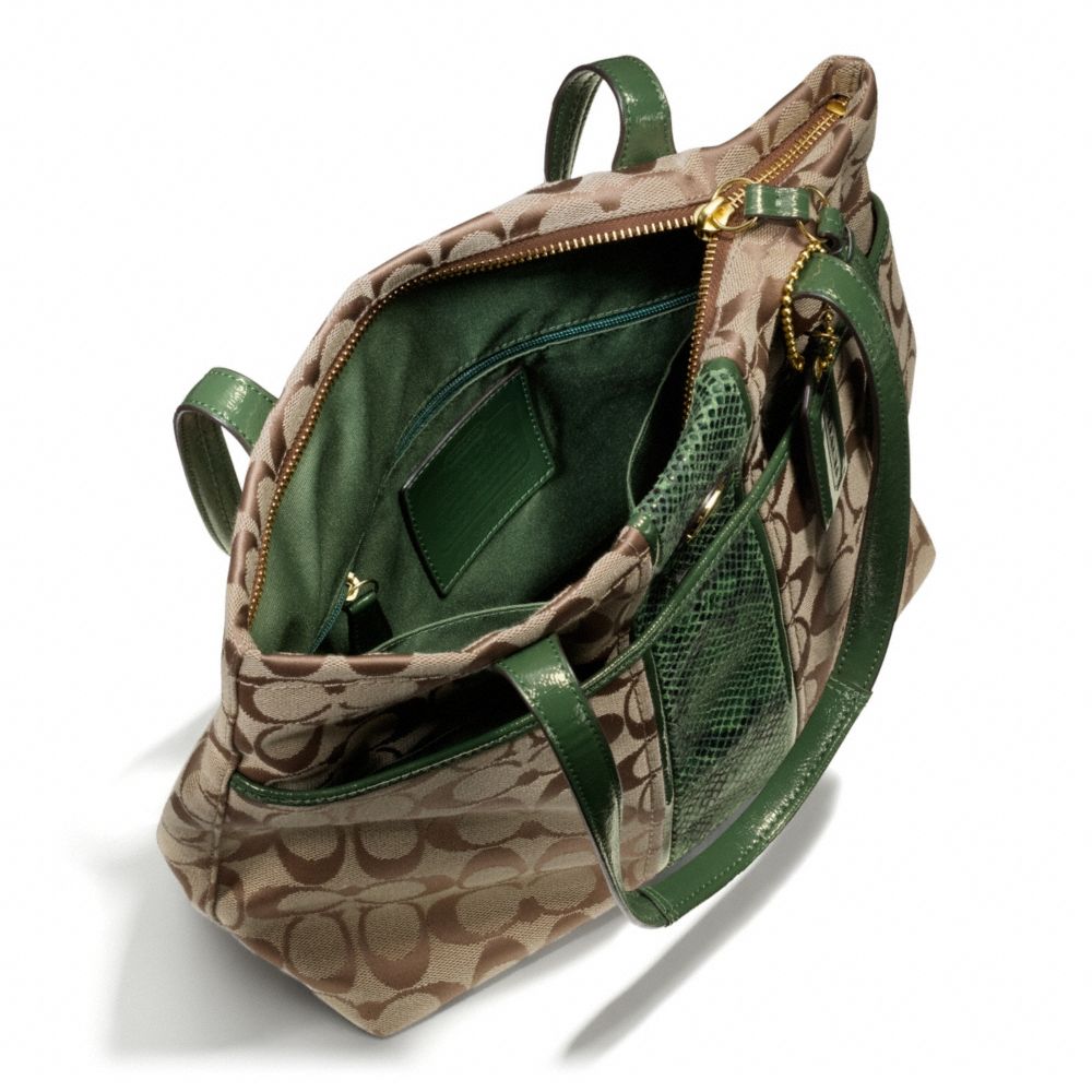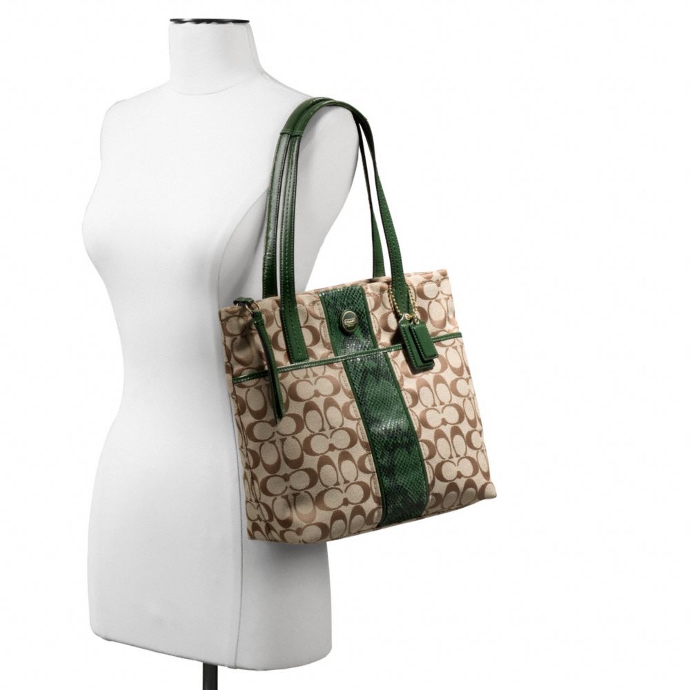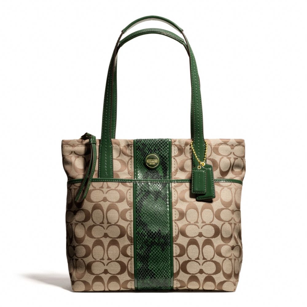 COACH FACTORY OUTLET PRICE CHART - F25706 - SIGNATURE STRIPE PYTHON STRIPE TOTE - BRASS/KHAKI/GREEN