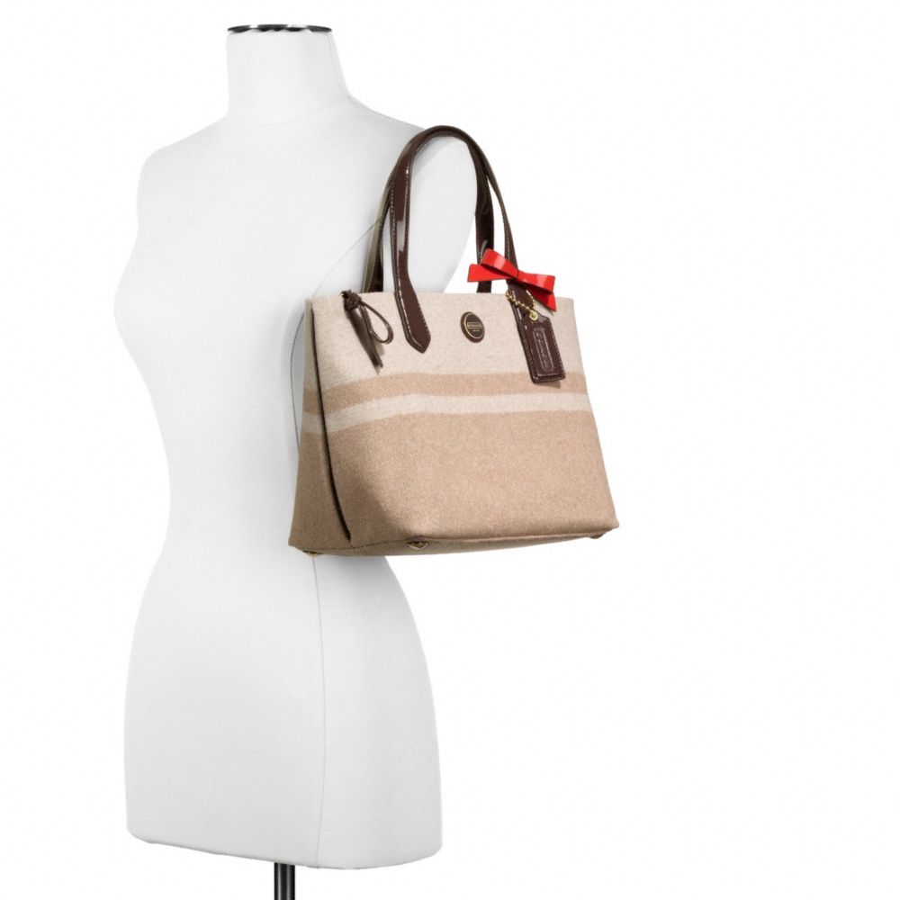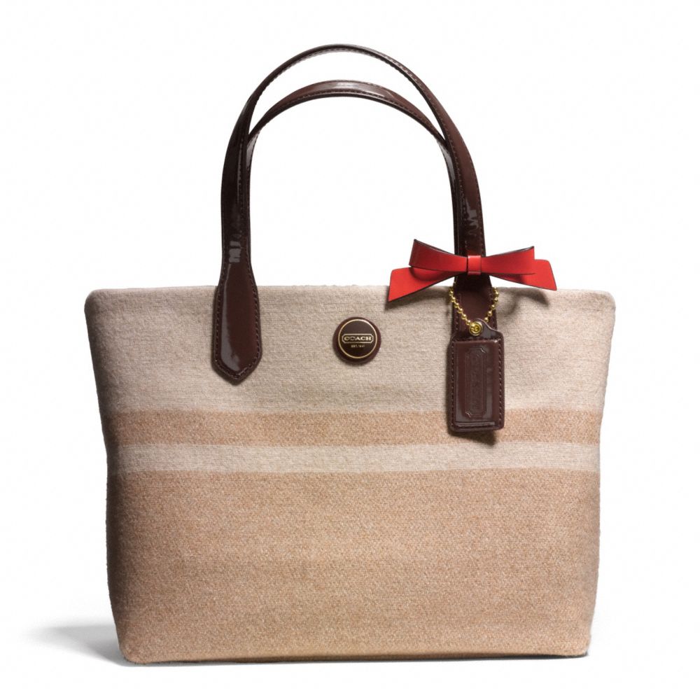 COACH FACTORY OUTLET PRICE CHART - F24786 - SIGNATURE STRIPE WOOL STRIPE LUNCH TOTE - BRASS/CAMEL/MAHOGANY