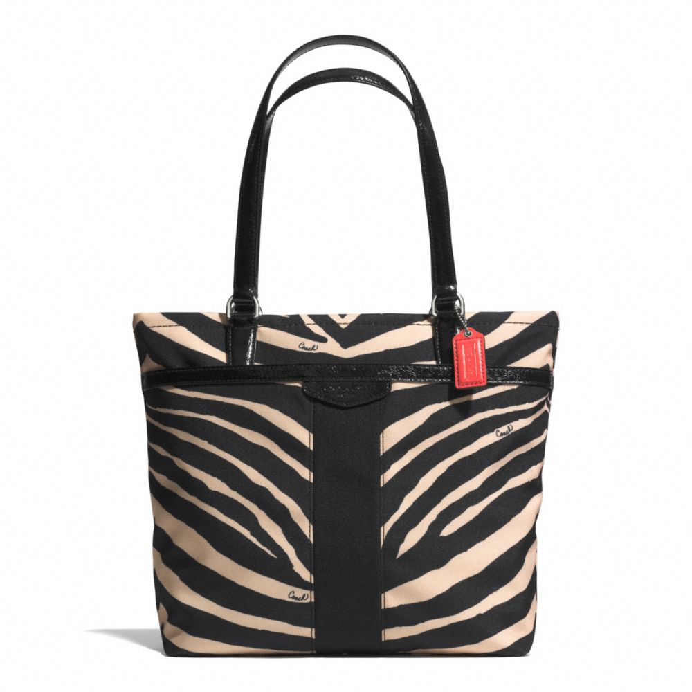 SIGNATURE STRIPE ZEBRA PRINT TOTE (COACH F23283)