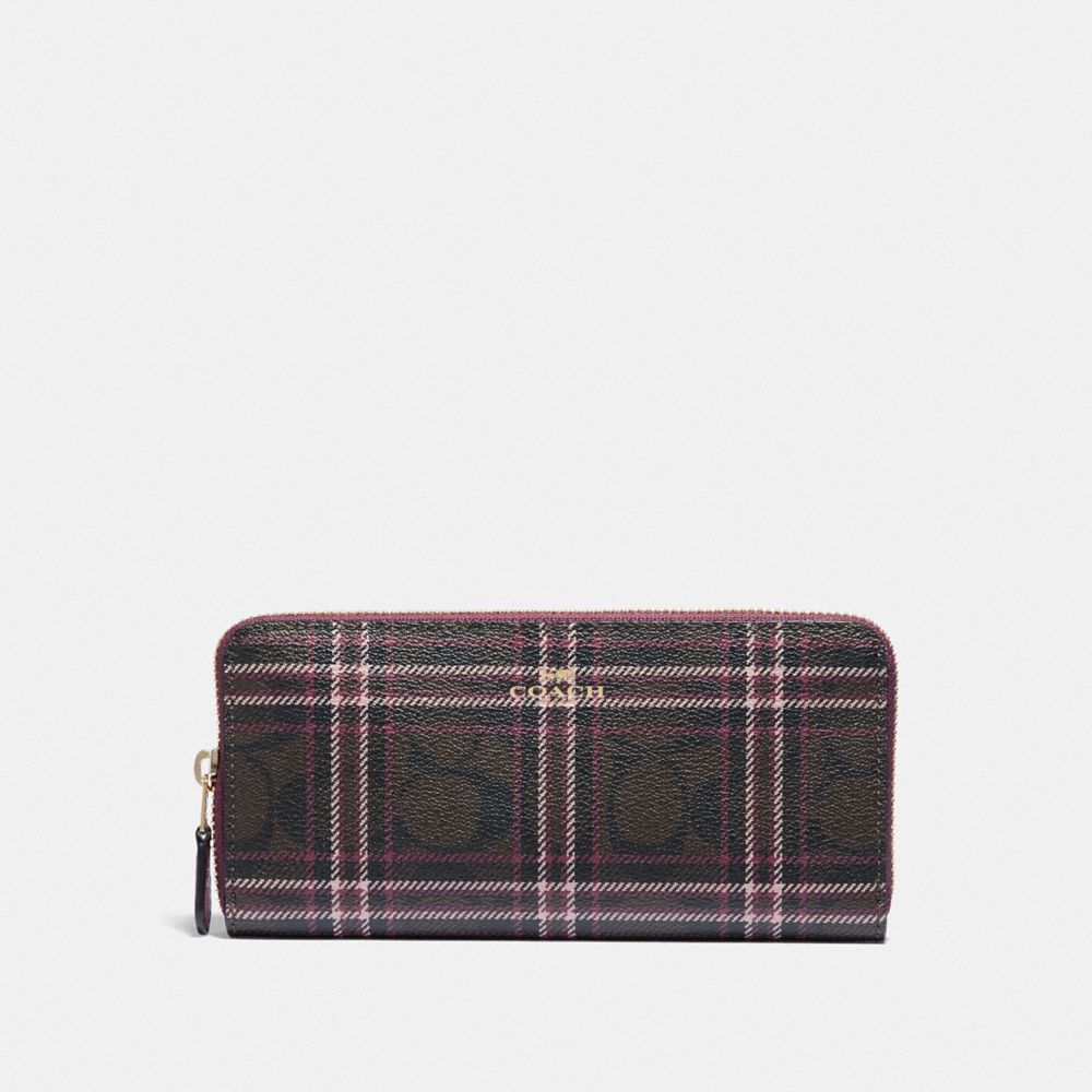 SLIM ACCORDION ZIP WALLET IN SIGNATURE CANVAS WITH SHIRTING PLAID PRINT (COACH F87718)