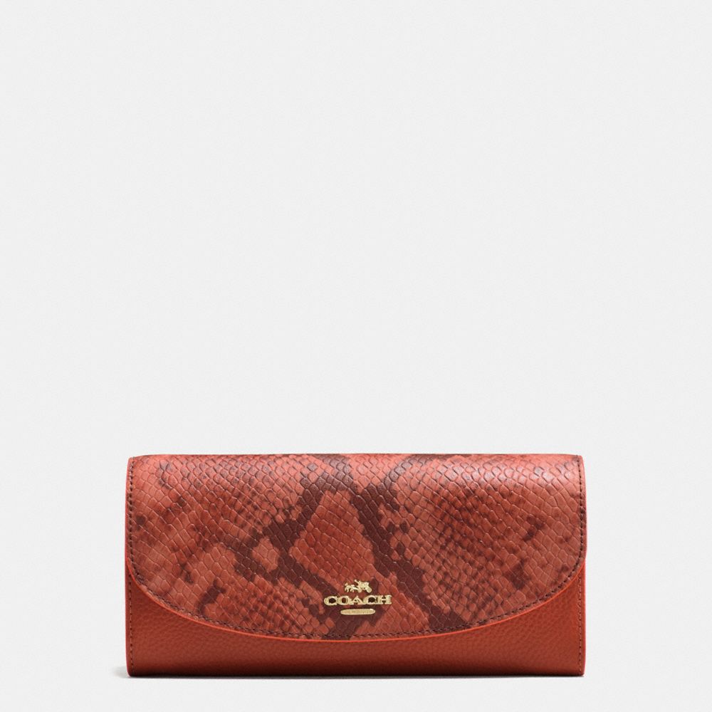COACH FACTORY OUTLET PRICE CHART - F11928 - SLIM ENVELOPE IN POLISHED PEBBLE LEATHER WITH PYTHON EMBOSSED LEATHER - IMITATION GOLD/TERRACOTTA MULTI