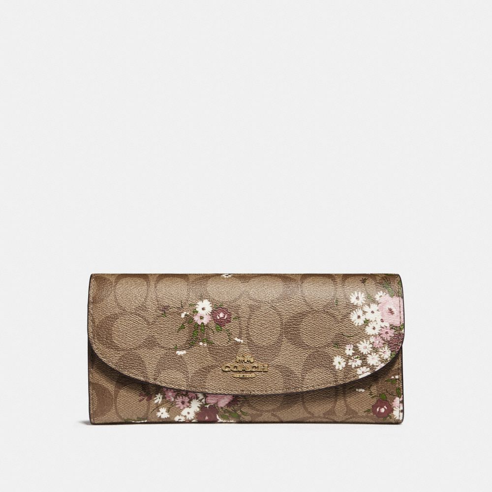 COACH FACTORY OUTLET PRICE CHART - F29395 - SLIM ENVELOPE WALLET IN SIGNATURE CANVAS WITH FLORAL BUNDLE PRINT - KHAKI/MULTI/IMITATION GOLD