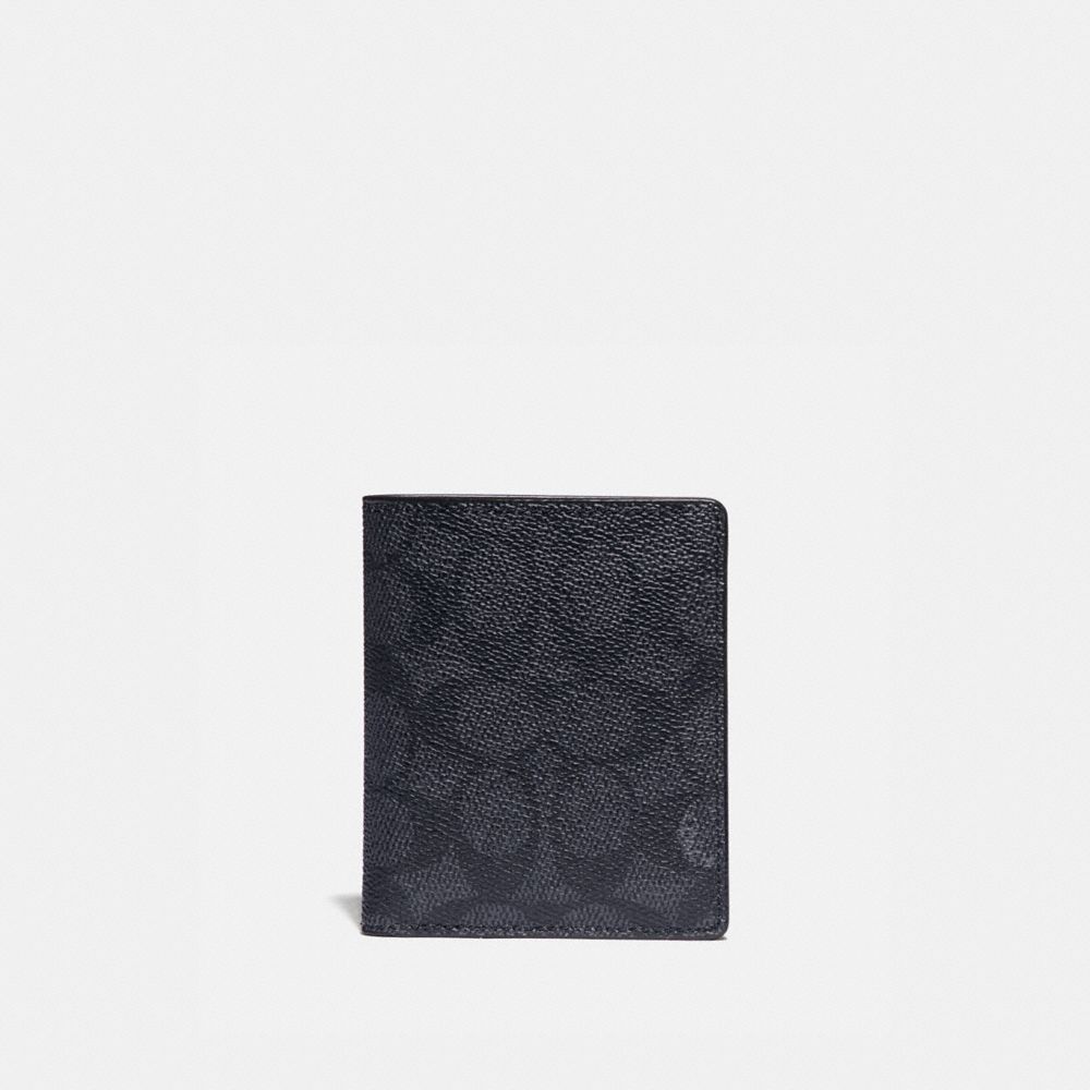 COACH FACTORY OUTLET PRICE CHART - 76339 - SLIM WALLET WITH SIGNATURE CANVAS BLOCKING - CHARCOAL SIGNATURE MULTI