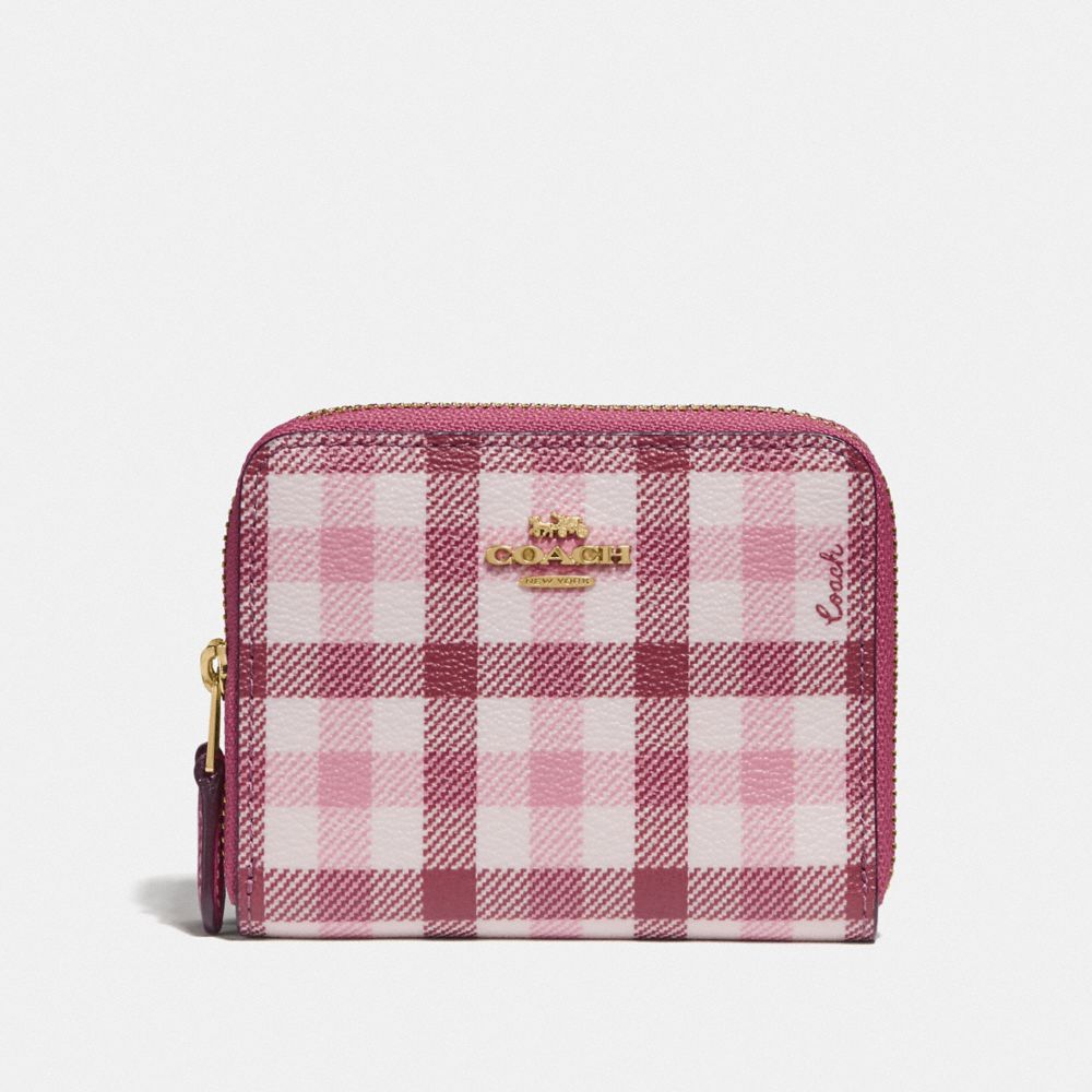 SMALL DOUBLE ZIP AROUND WALLET IN SIGNATURE CANVAS AND GINGHAM PRINT (COACH F76753)