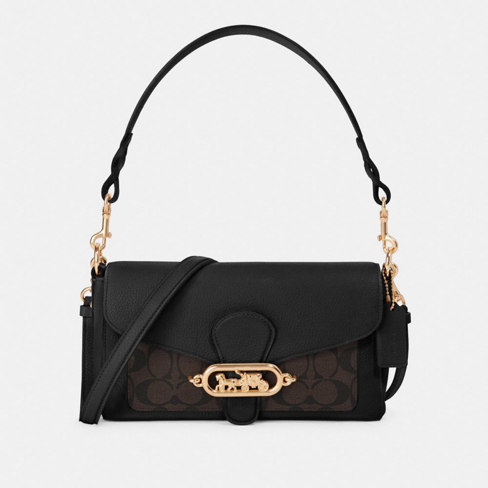 COACH FACTORY OUTLET PRICE CHART - F90782 - SMALL JADE SHOULDER BAG WITH SIGNATURE CANVAS DETAIL - IM/BROWN BLACK