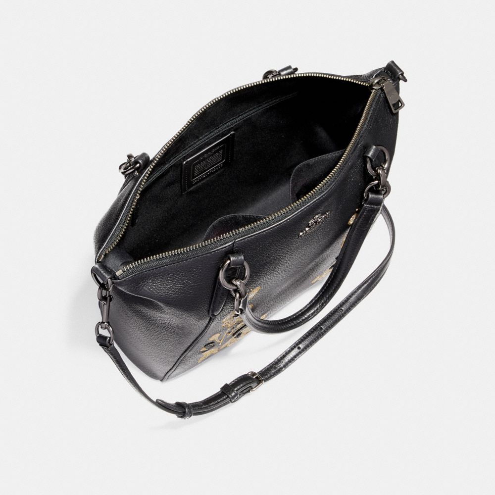SMALL KELSEY SATCHEL IN PEBBLE LEATHER WITH FLORAL EMBROIDERY (COACH F12007)