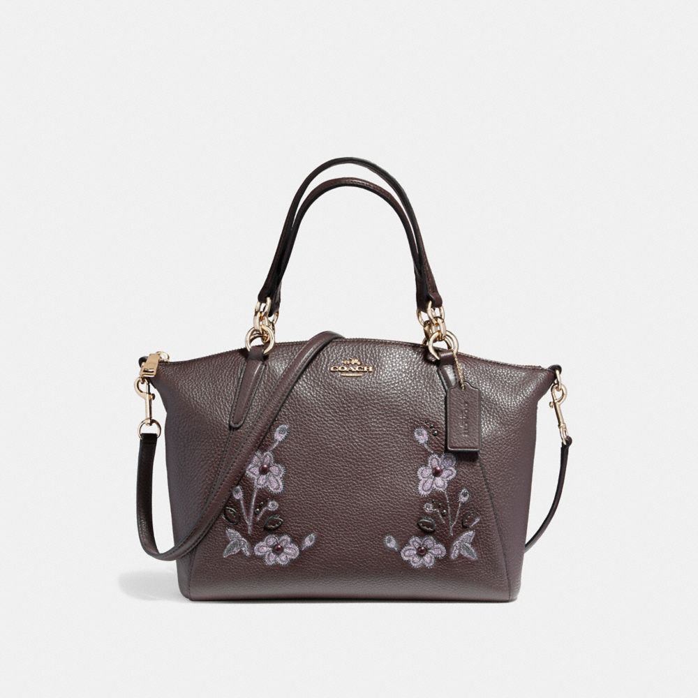 COACH FACTORY OUTLET PRICE CHART - F12007 - SMALL KELSEY SATCHEL IN PEBBLE LEATHER WITH FLORAL EMBROIDERY - LIGHT GOLD/OXBLOOD 1