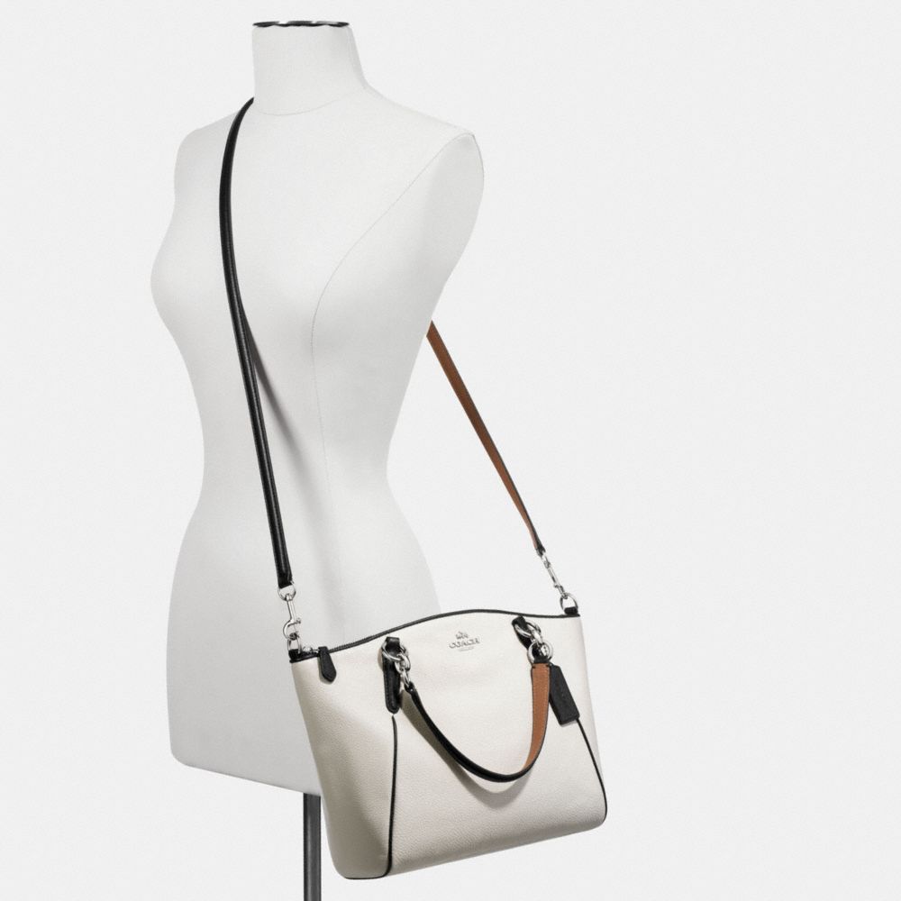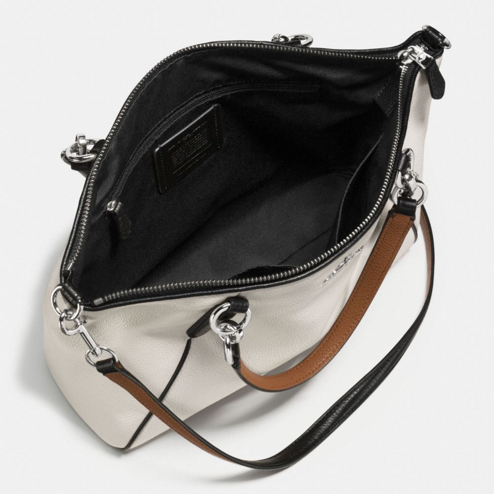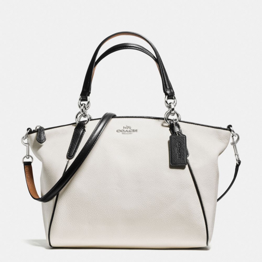 SMALL KELSEY SATCHEL WITH CONTRAST TRIM IN PEBBLE LEATHER (COACH F57486)