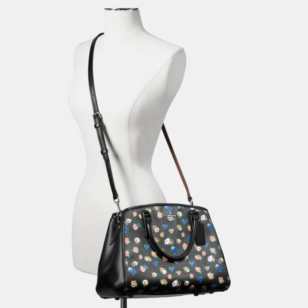 COACH FACTORY OUTLET PRICE CHART - F57629 - SMALL MARGOT CARRYALL IN TEA ROSE FLORAL PRINT COATED CANVAS - SILVER/BLACK MULTI