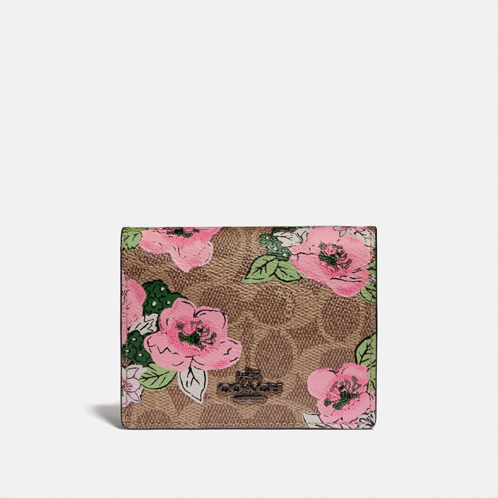 SMALL SNAP WALLET IN SIGNATURE CANVAS WITH BLOSSOM PRINT (COACH 89310)