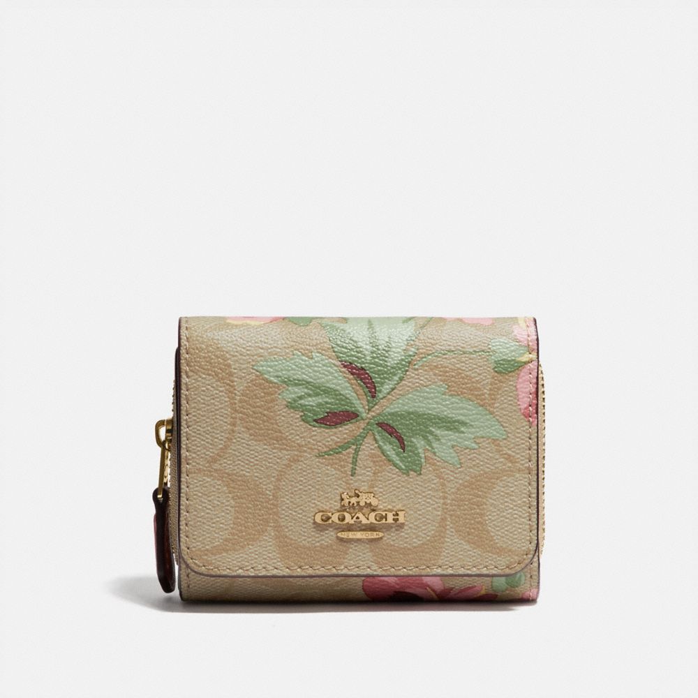 COACH FACTORY OUTLET PRICE CHART - F75922 - SMALL TRIFOLD WALLET IN SIGNATURE CANVAS WITH LILY PRINT - LIGHT KHAKI/PINK MULTI/IMITATION GOLD
