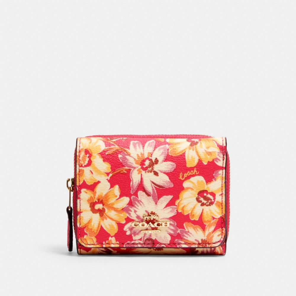 COACH FACTORY OUTLET PRICE CHART - 3509 - SMALL TRIFOLD WALLET WITH VINTAGE DAISY SCRIPT PRINT - IM/PINK MULTI