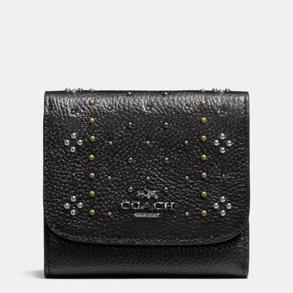 SMALL WALLET IN POLISHED PEBBLE LEATHER WITH BANDANA RIVETS (COACH F55720)