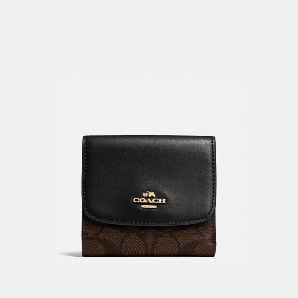 COACH FACTORY OUTLET PRICE CHART - F87589 - SMALL WALLET IN SIGNATURE CANVAS - BROWN/BLACK/IMITATION GOLD