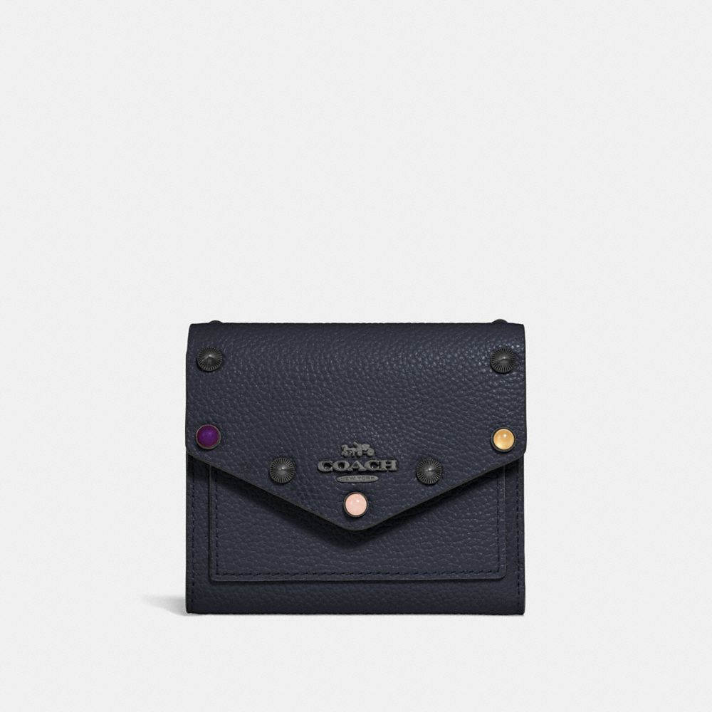 COACH FACTORY OUTLET PRICE CHART - 67131 - SMALL WALLET WITH RIVETS - MIDNIGHT NAVY/GUNMETAL