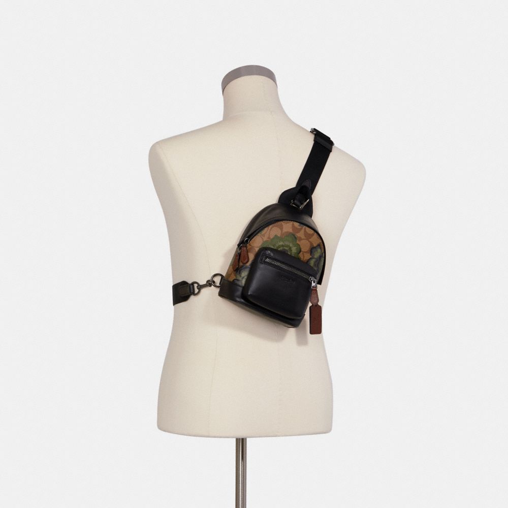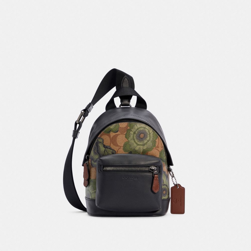 COACH FACTORY OUTLET PRICE CHART - C3403 - SMALL WEST BACKPACK CROSSBODY IN SIGNATURE CANVAS WITH KAFFE FASSETT PRINT - QB/KHAKI GREEN BLACK MULTI