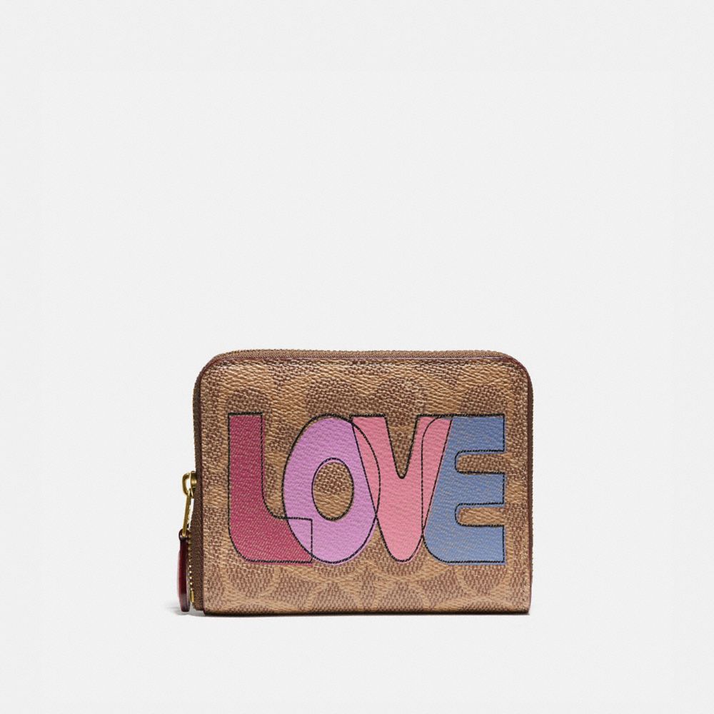 COACH FACTORY OUTLET PRICE CHART - 89564 - SMALL ZIP AROUND WALLET IN SIGNATURE CANVAS WITH LOVE PRINT - B4/TAN PINK MULTI