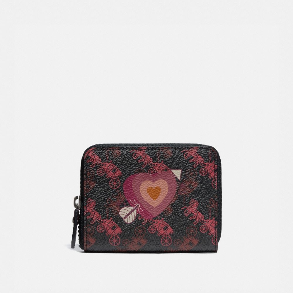 SMALL ZIP AROUND WALLET WITH HORSE AND CARRIAGE PRINT AND HEART (COACH 86395)