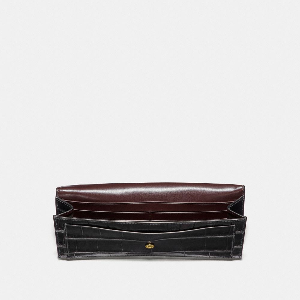 Crocodile-embossed leather | Eight credit card slots| Full-length bill compartment| Snap closure| Outside zip coin pocket| 7 3/4" (L) x 3 1/2" (H)