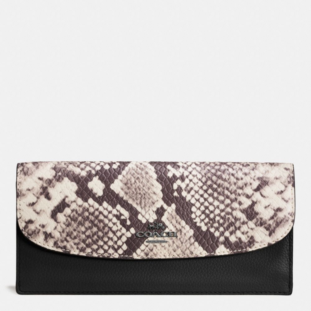COACH FACTORY OUTLET PRICE CHART - F57592 - SOFT WALLET WITH SNAKE EMBOSSED LEATHER TRIM - ANTIQUE NICKEL/BLACK MULTI