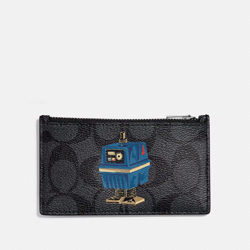 STAR WARS X COACH ZIP CARD CASE IN SIGNATURE CANVAS WITH POWER DROID (COACH F88109)
