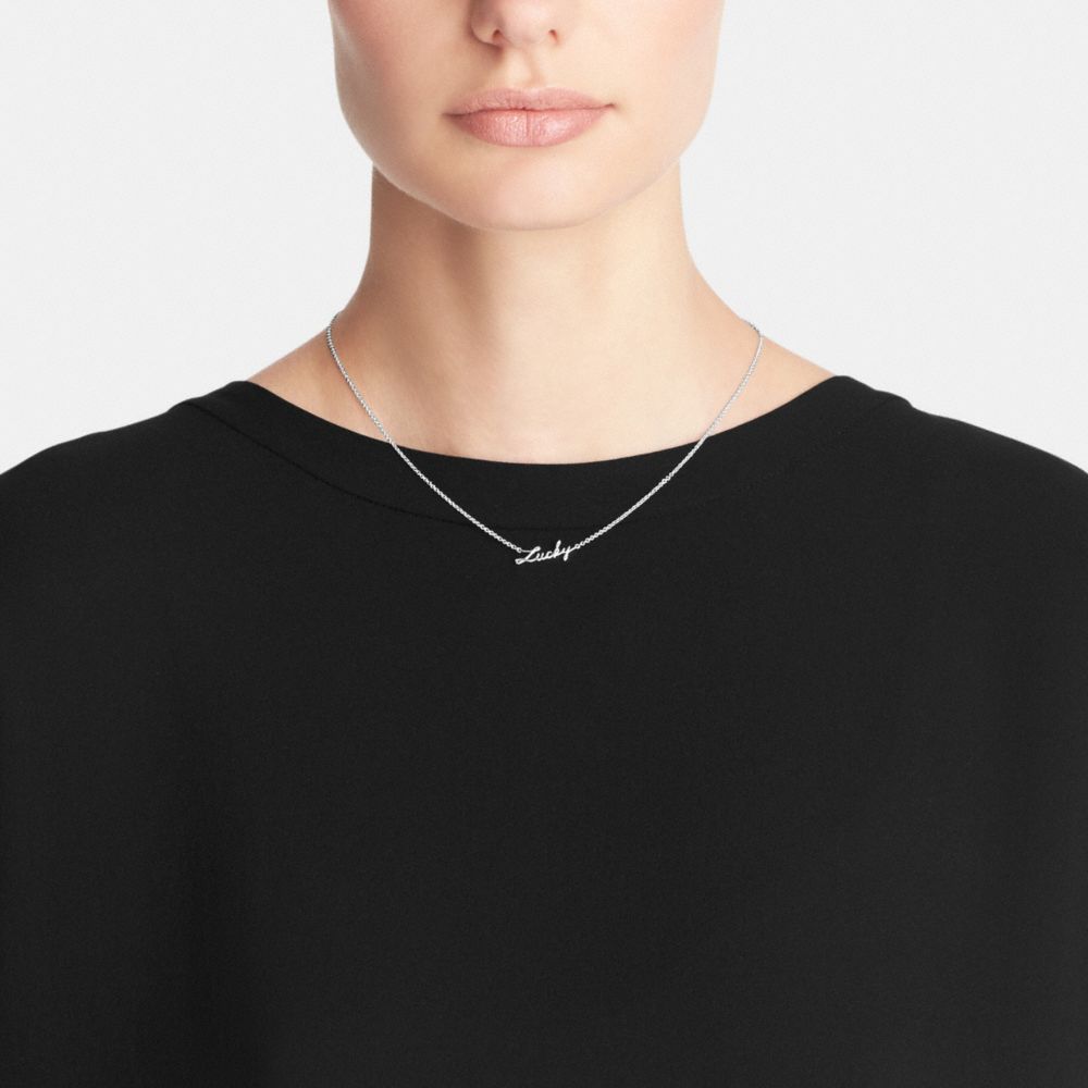 STERLING LUCKY SCRIPT NECKLACE (COACH F90890)