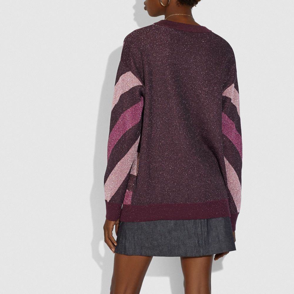 Front panel: 42% polyester, 37% wool, 21% metallic| Back panel and sleeves: 51% polyester, 28% metallic, 21% wool| Length: 28"| Dry clean| Model is 5'10" (178cm), chest 31" (79cm), waist 24" (61cm), hips 35" (89cm) and wears a size S