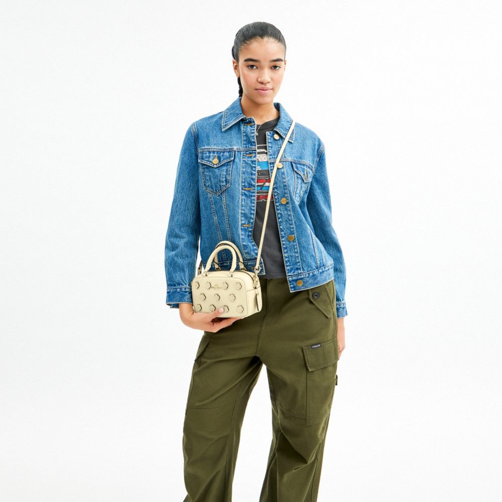 COACH FACTORY OUTLET PRICE CHART - CAJ99 - SATCHEL CROSSBODY BAG WITH FLORAL APPLIQUE - IM/MOONLIGHT