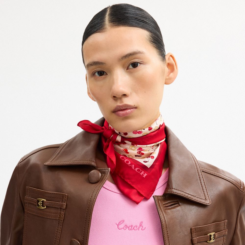 SCULPTED C CHERRIES PRINT SILK BANDANA (COACH CDG76)