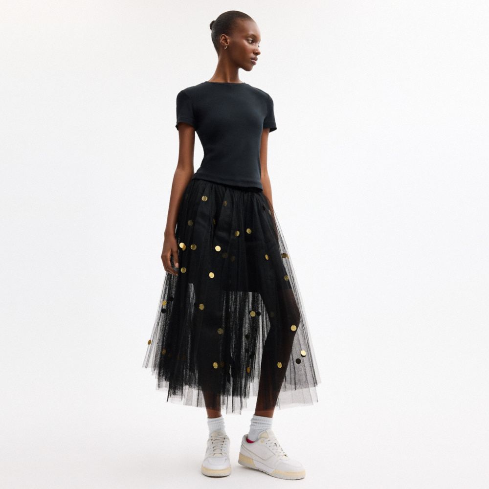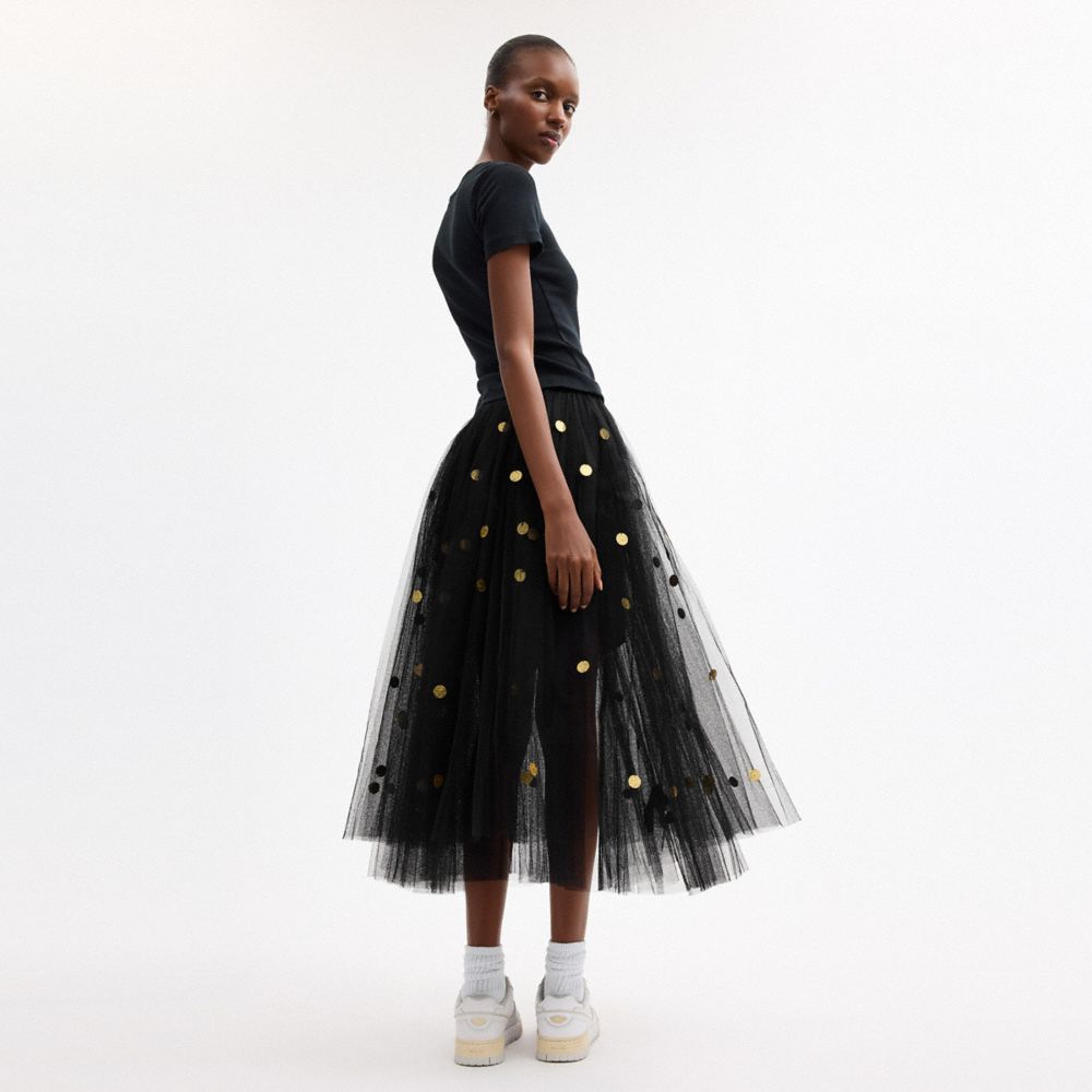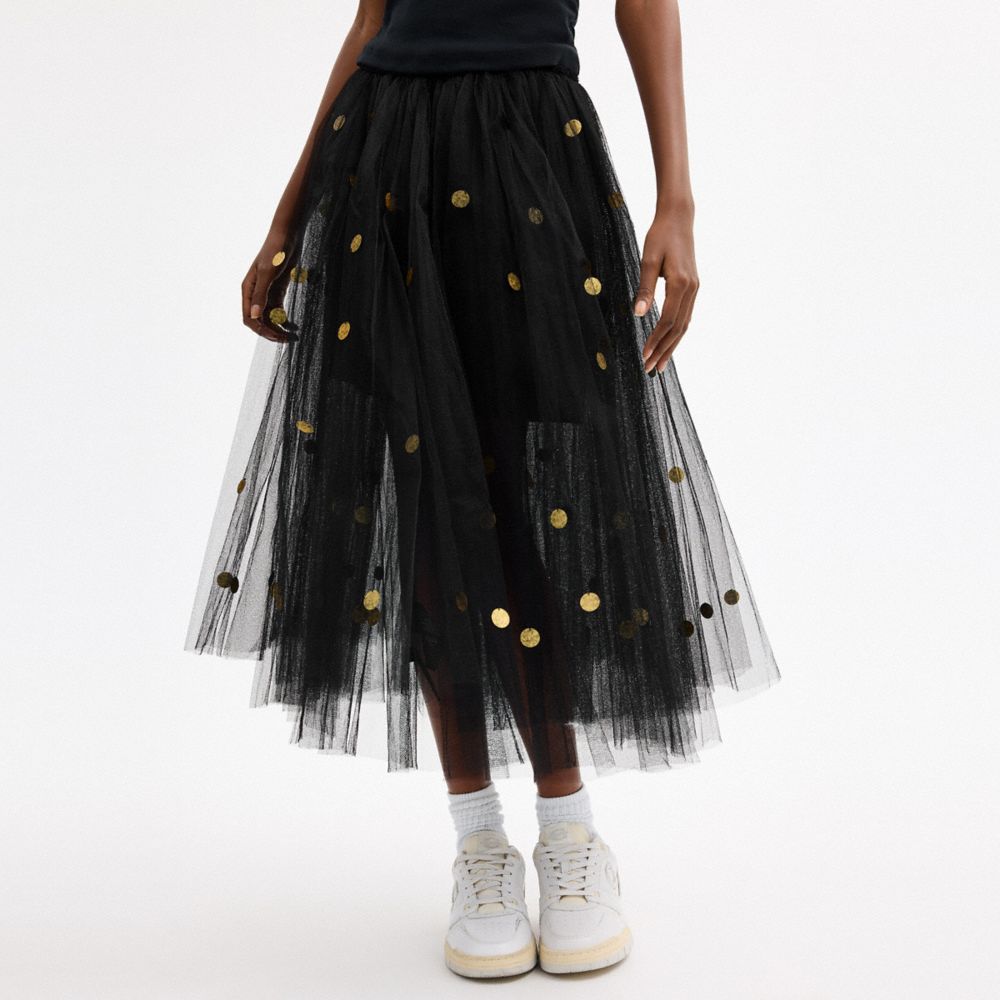 SEQUIN PAILLETTE TULLE SKIRT IN RECYCLED POLYESTER (COACH CDK29)