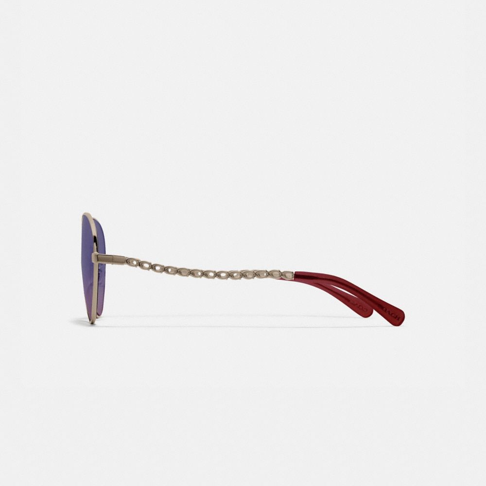 COACH FACTORY OUTLET PRICE CHART - L1148 - SIGNATURE CHAIN OVAL SUNGLASSES - LIGHT GOLD/BLUE BRUGUNDY GRAD