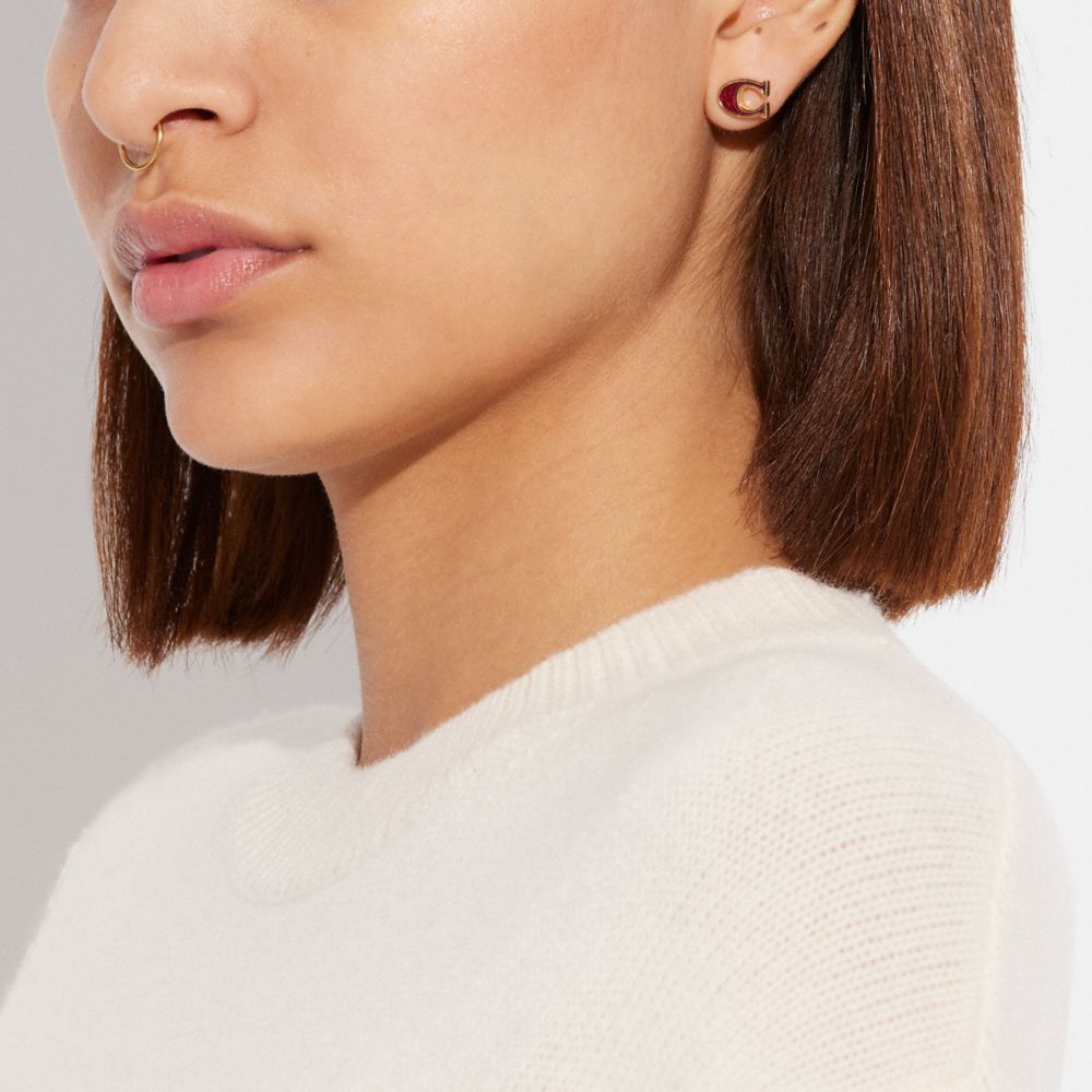 SIGNATURE ENAMEL STUD EARRINGS (COACH CF982)