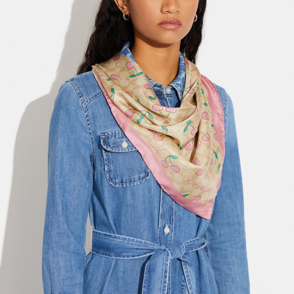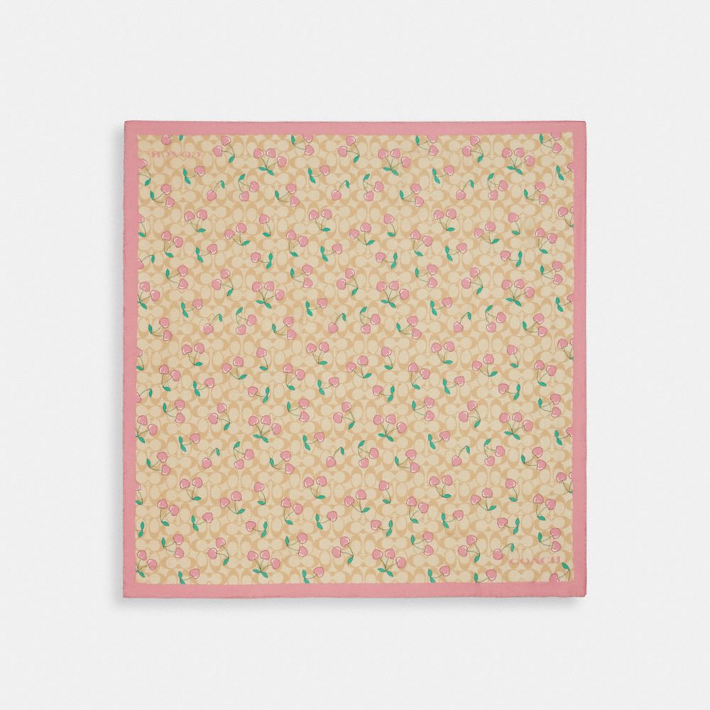 SIGNATURE HEART CHERRY PRINT SILK SQUARE SCARF (COACH CE478)