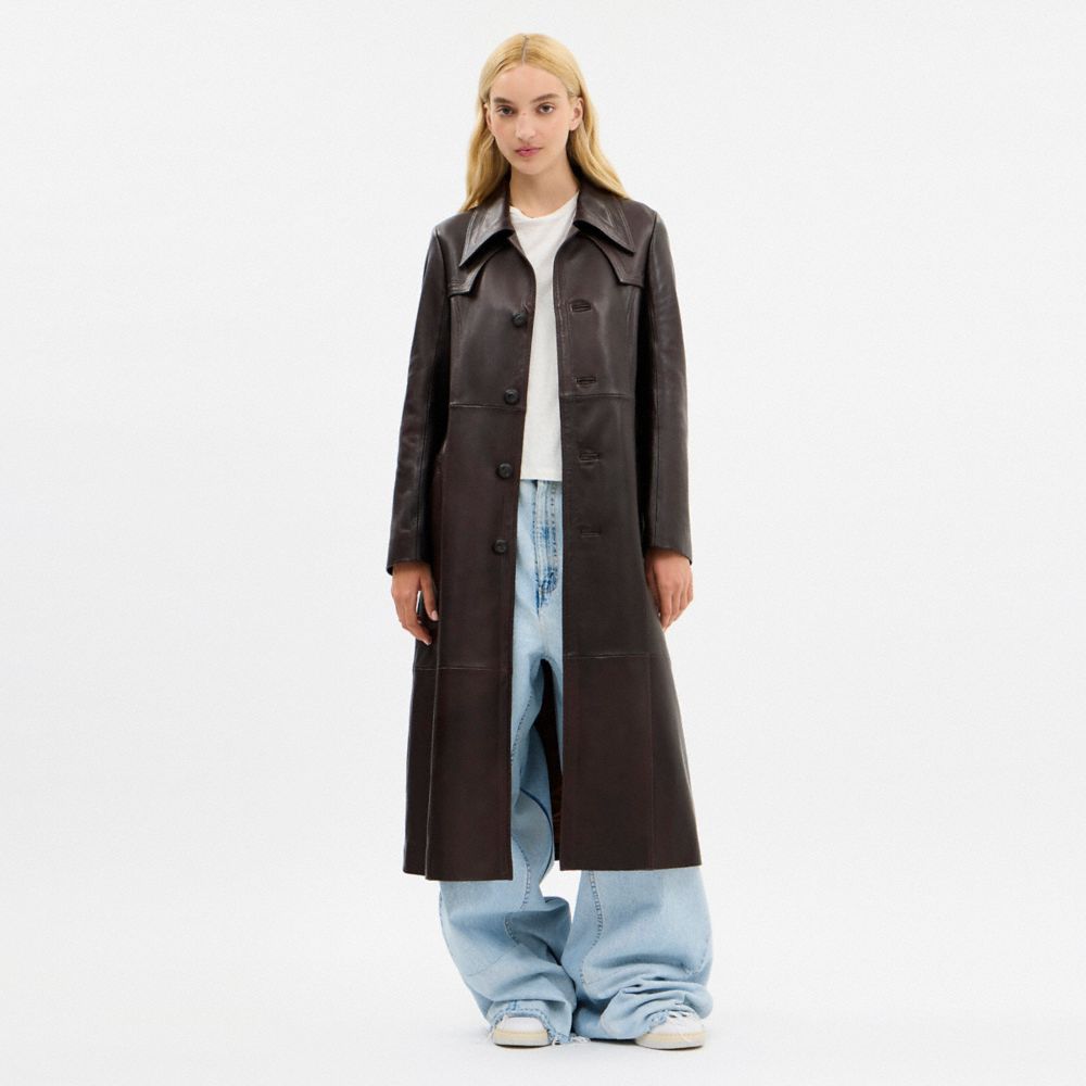 SINGLE BREASTED LEATHER TRENCH COAT (COACH CCO45)
