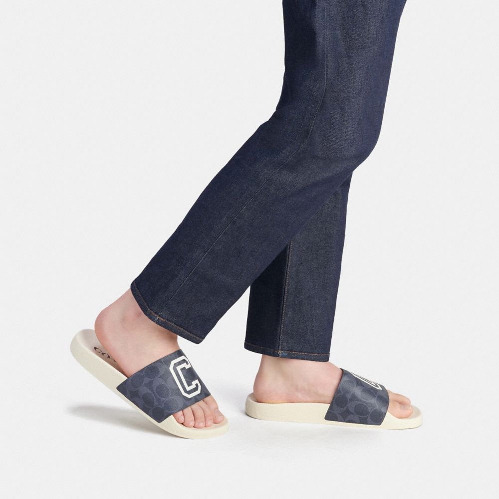 COACH FACTORY OUTLET PRICE CHART - CD876 - SLIDE IN SIGNATURE CANVAS WITH VARSITY - DENIM