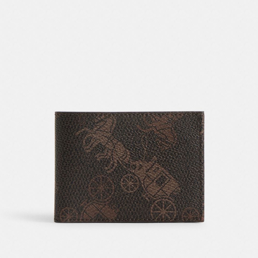 SLIM BILLFOLD WALLET WITH LARGE HORSE AND CARRIAGE PRINT (COACH CM407)