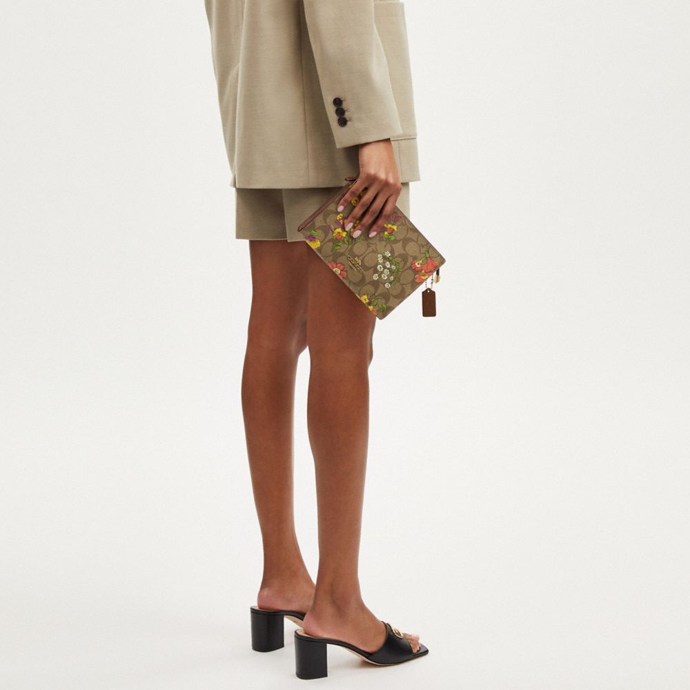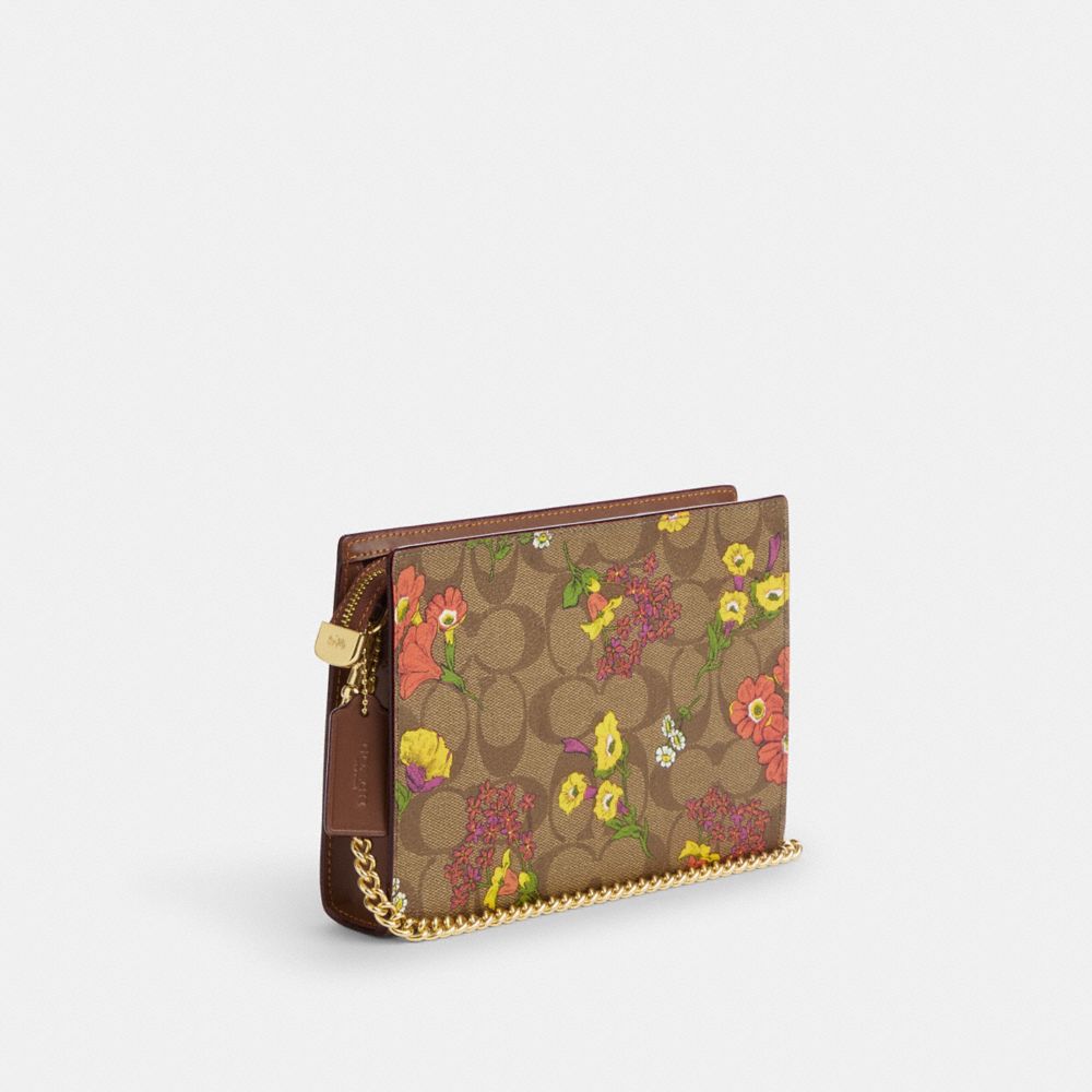COACH FACTORY OUTLET PRICE CHART - CR240 - SLIM CROSSBODY IN SIGNATURE CANVAS WITH FLORAL PRINT - GOLD/KHAKI MULTI