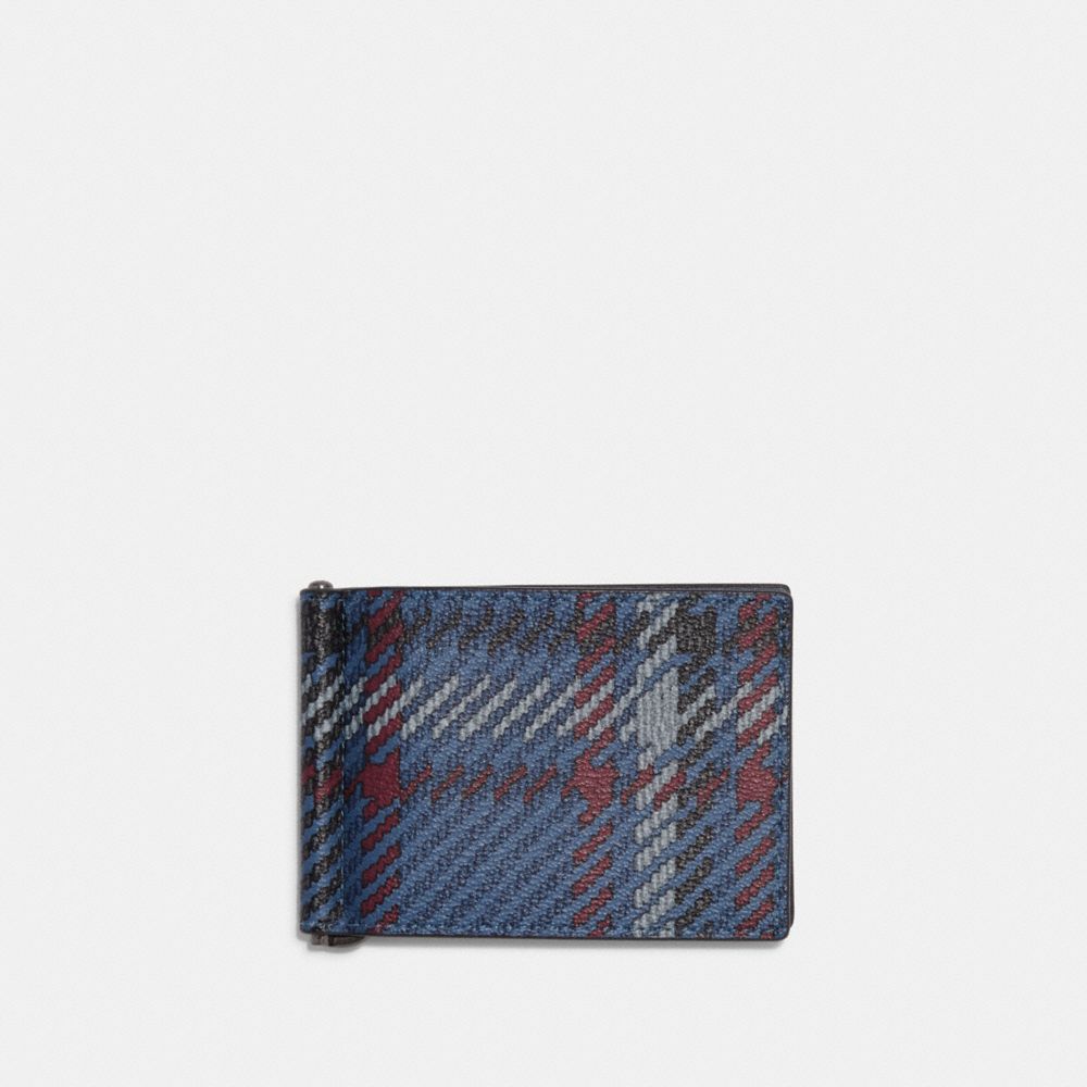 SLIM MONEY CLIP BILLFOLD WALLET WITH PLAID PRINT (COACH CH089)